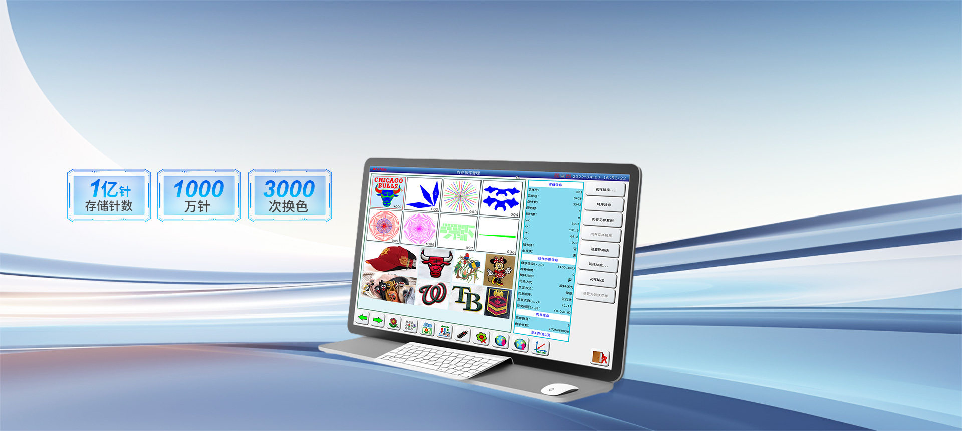 存儲針數達1億針,單個花樣可達1000萬針、3000次換色,滿足復雜花樣設計需求