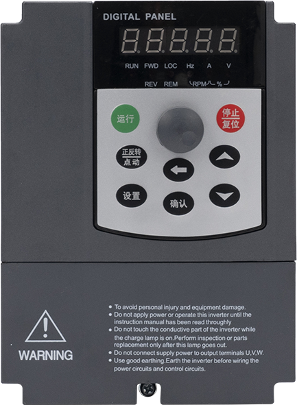 LED顯示  可顯示設(shè)定頻率、 輸出頻率、 輸出電壓、 輸出電流等