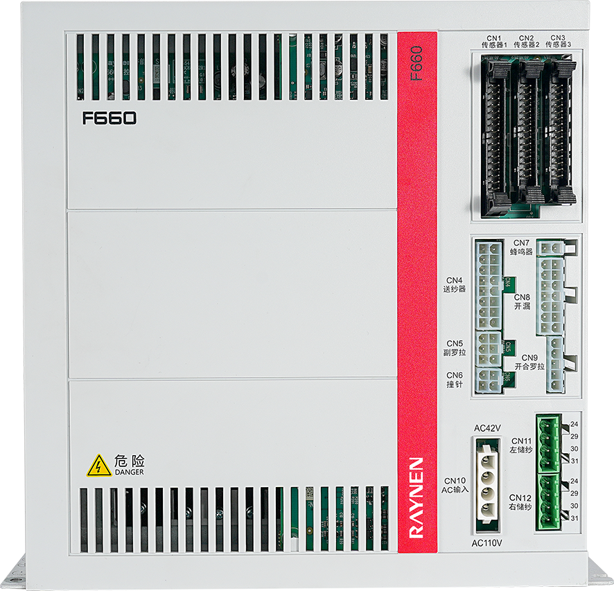 橫機(jī)電控,是電腦橫機(jī)的核心部件,它能通過識(shí)別打版系統(tǒng)制作的針織打版文件,猶如毛衫的打印機(jī)一樣,將毛衫或鞋面的設(shè)計(jì)變?yōu)楝F(xiàn)實(shí),主要由配電盤、主控盒、伺服、起底板、羅拉驅(qū)動(dòng)、機(jī)頭以及相關(guān)線材組成。
