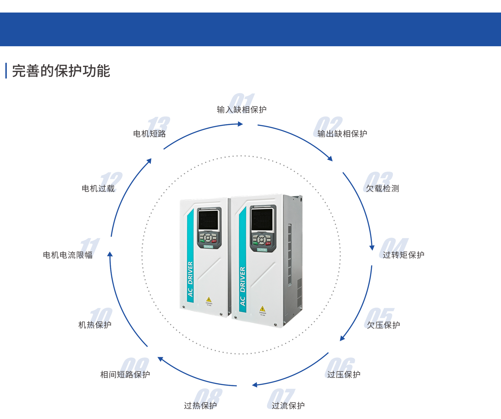 | 變頻器保護(hù) | 輸?缺相保護(hù)、輸出缺相保護(hù)、?載檢測(cè)、過轉(zhuǎn)矩保護(hù)、?壓保護(hù)、過壓保護(hù)、過流保護(hù)、過熱保護(hù)、 相間短路保護(hù) | |